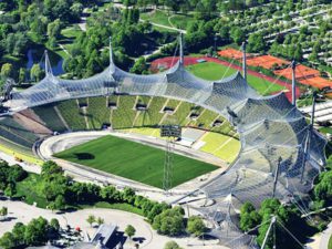 ઑલિમ્પિક સ્ટેડિયમ – મ્યુનિક : વર્ષ 1972ના ઉનાળાની ઑલિમ્પિક રમતો માટે જર્મનીના મ્યુનિક શહેરમાં બનાવાયેલ અને આશરે 74,૦૦૦ ચોમી. ક્ષેત્રમાં પ્રસરેલ સ્ટેડિયમ. આ પ્રકારની શ્રેણીનાં મકાનોમાં એક ઉલ્લેખનીય રચના છે. આશરે મહત્તમ 8૦,૦૦૦ દર્શકોની ક્ષમતાવાળા આ સ્ટેડિયમની રચના ફ્રાઈ ઓટો તથા ગુંથેર બેહનીશ નામના સ્થપતિ અને તેની ટીમ દ્વારા કરાઈ છે. પાછળથી થોડા ફેરફાર કરી આ ક્ષમતા ઘટાડીને 69,૦૦૦ જેટલી કરાઈ હતી. કહેવાય છે કે બીજા વિશ્વયુદ્ધ દરમિયાન ખુવાર થયેલ મ્યુનિક શહેરમાં આ સ્થળે બૉમ્બમારાથી ખાડા પડી ગયા હતા અને તે જ ખાડાઓનો ઉપયોગ કરી ત્યાં સ્ટેડિયમ બનાવી દેવાયું. એનાં ખુલ્લાપણાને કારણે અહીં સંગીતના પ્રોગ્રામોનું આયોજન પણ થતું રહ્યું છે. આ સ્ટેડિયમની રચના માટે આંતરરાષ્ટ્રીય સ્પર્ધા યોજાઈ હતી, જેમાં આ પરિકલ્પના પસંદ પામી, કારણ કે આ રચનામાં ઉપયોગિતા સાથે કળા અને તકનીકનો સમન્વય નવાં જ પરિપ્રેક્ષ્યમાં કરાયો હતો. સન 1972ના ઑલિમ્પિક માટે હેપી ગેઇમ્સ – “આનંદમયી” રમતોનું સ્લોગન રખાયું હતું. આવા આનંદની અભિવ્યક્તિ જાણે સ્થાપત્ય દ્વારા કરવામાં આવી હોય તેમ જણાય છે. આજે સ્ટેડિયમનો ઉપયોગ મુખ્યત્વે સ્થાનિક ઇવેન્ટ્સ અને પ્રવાસન સ્થાન તરીકે કરાય છે. આ એ જ ઑલિમ્પિક રમત હતી જેમાં આરબ ત્રાસવાદીઓએ ઇઝરાયેલના 17 જેટલા ખેલાડીઓની હત્યા કરી હતી.